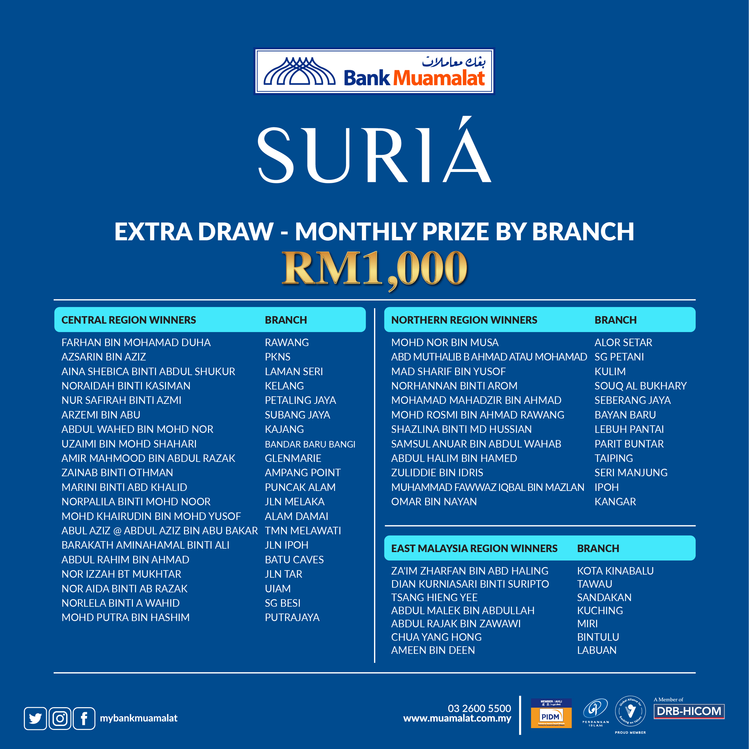 טוויטר Bank Muamalat Malaysia Berhad 6175 W בטוויטר Congratulations To All Mudarabah Unrestricted Investment Account Suria Monthly Campaign Winners For August 2021 Be In The Running To Win The Grand Prize Of